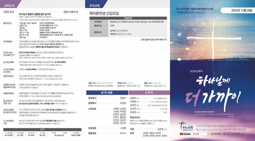 25-12-28 페이지 정보 작성자 주는교회 댓글 0건 조회 153회 작성일 25-12-25 11:44 목록 본문 이전글25-01-04 26.01.02 다음글25-12-25 25.12.25 댓글 0 댓글목록 등록된 댓글이 없습니다.