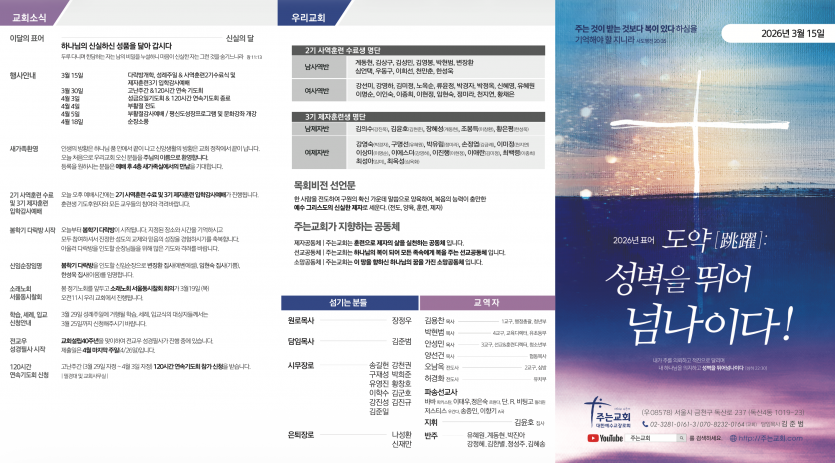 26-03-15 페이지 정보 작성자 주는교회 댓글 0건 조회 149회 작성일 26-03-13 14:31 목록 본문 이전글26-03-22 26.03.20 다음글26-03-08 26.03.06 댓글 0 댓글목록 등록된 댓글이 없습니다.