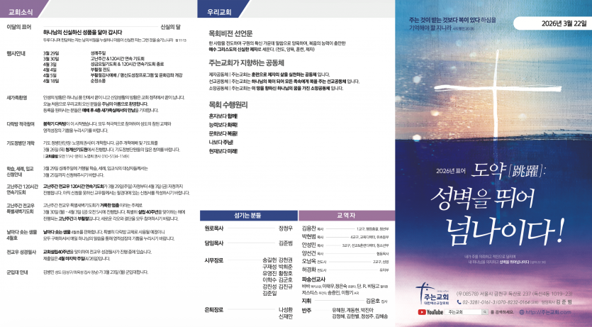 26-03-22 페이지 정보 작성자 주는교회 댓글 0건 조회 72회 작성일 26-03-20 18:48 목록 본문 다음글26-03-15 26.03.13 댓글 0 댓글목록 등록된 댓글이 없습니다.