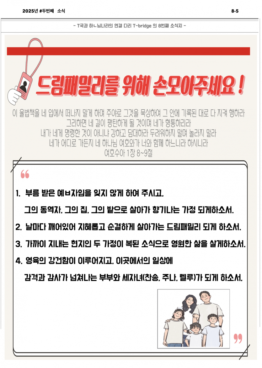 2025년 4월 송증인/이향기 선교사 선교보고 페이지 정보 작성자 주는교회 댓글 0건 조회 423회 작성일 25-04-24 15:27 목록 본문 이전글2025년 5월 원로목사님 사역 25.06.04 다음글2024년 3월 김미현 선교사 선교보고(E국) 25.04.09 댓글 0 댓글목록 등록된 댓글이 없습니다.