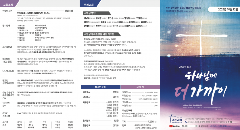 25-10-12 페이지 정보 작성자 주는교회 댓글 0건 조회 58회 작성일 25-10-10 09:37 목록 본문 다음글25-10-05 25.10.04 댓글 0 댓글목록 등록된 댓글이 없습니다.