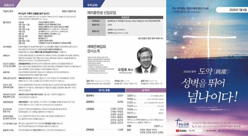25-01-04 페이지 정보 작성자 주는교회 댓글 0건 조회 136회 작성일 26-01-02 16:48 목록 본문 이전글25-01-11 26.01.09 다음글25-12-28 25.12.25 댓글 0 댓글목록 등록된 댓글이 없습니다.