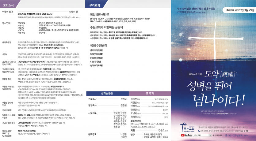 26-03-29 페이지 정보 작성자 주는교회 댓글 0건 조회 185회 작성일 26-03-27 10:48 목록 본문 이전글26-04-05 26.04.04 다음글26-03-22 26.03.20 댓글 0 댓글목록 등록된 댓글이 없습니다.
